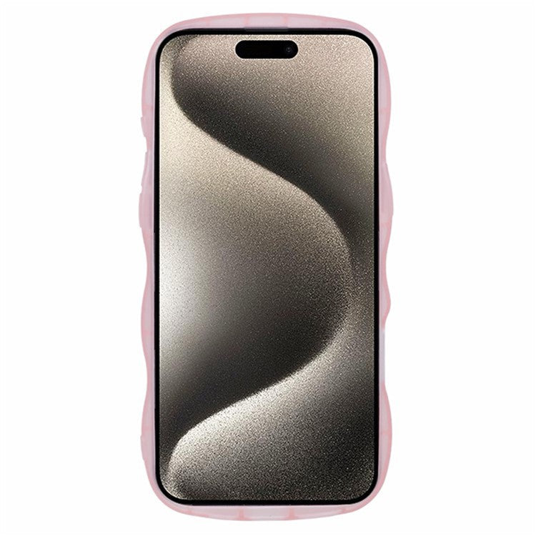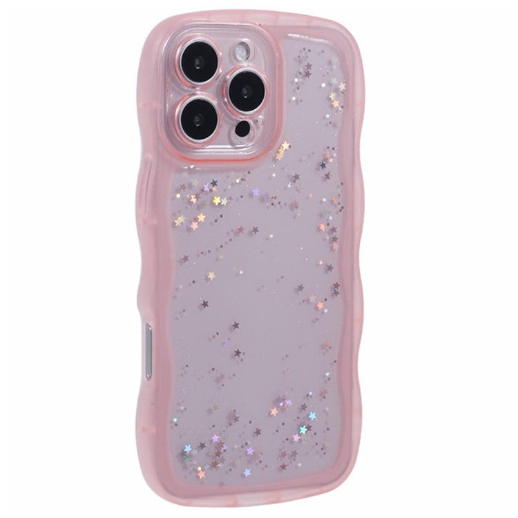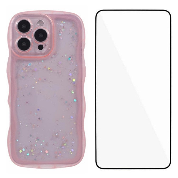 WANLONFENG JWT Series for iPhone 16 Pro TPU Case Epoxy Phone Cover Wavy Edge with Tempered Glass - Transparent Pink