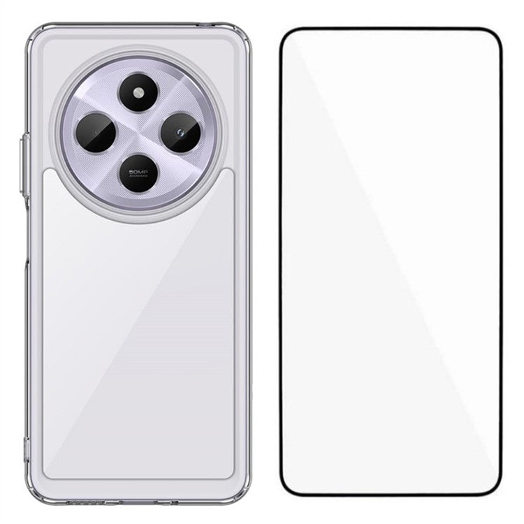 WANLONFENG MF Series Clear Case for Xiaomi Poco C75 4G / Redmi 14R 5G / 14C 4G TPU+Acrylic Phone Cover with Tempered Glass Film