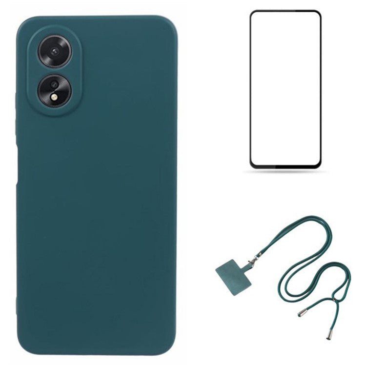 WANLONFENG RB1 Series For Oppo A58 4G Case TPU Cover with Screen Protector+Lanyard Accessories Kit - Army Green