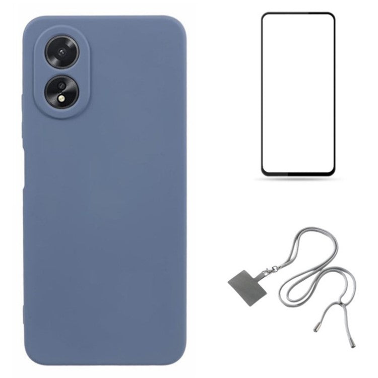 WANLONFENG RB1 Series For Oppo A58 4G Case TPU Cover with Screen Protector+Lanyard Accessories Kit - Lavender Grey