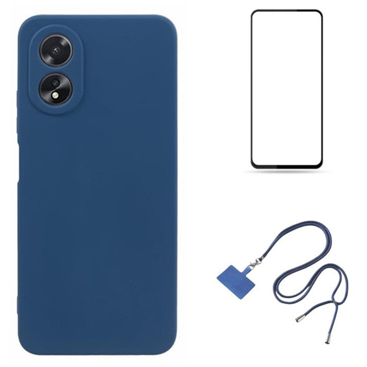 WANLONFENG RB1 Series For Oppo A58 4G Case TPU Cover with Screen Protector+Lanyard Accessories Kit - Sapphire