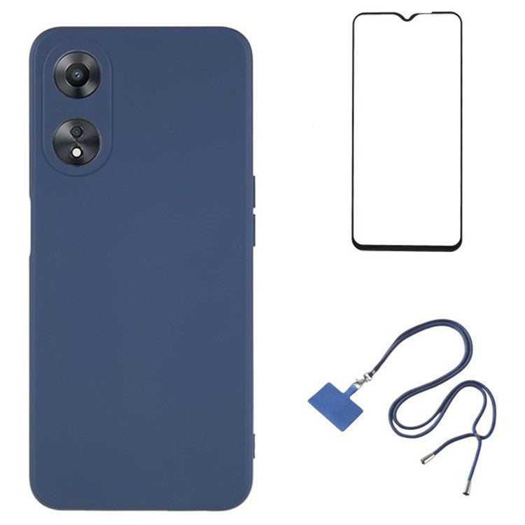 WANLONFENG RB1 Series For Oppo A58 5G TPU Phone Case Screen Film+Lanyard 3-in-1 - Lavender Grey