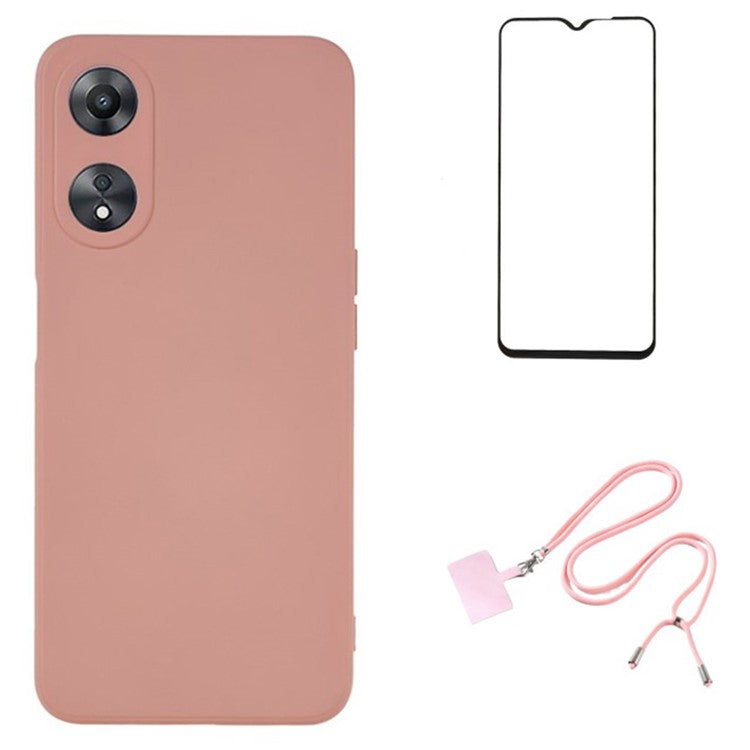 WANLONFENG RB1 Series For Oppo A58 5G TPU Phone Case Screen Film+Lanyard 3-in-1 - Pink