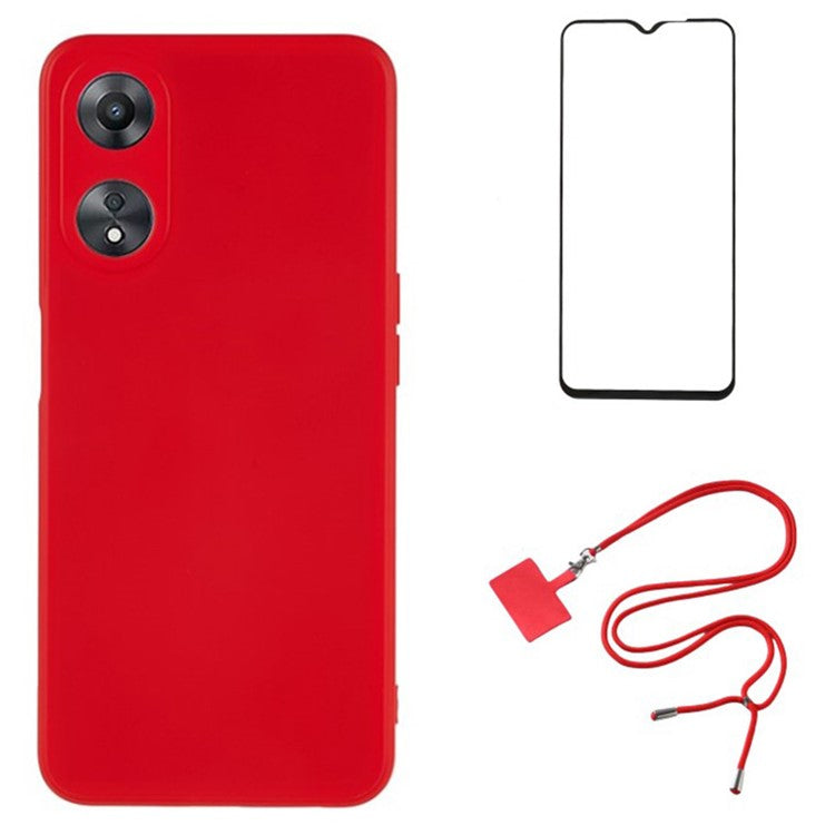 WANLONFENG RB1 Series For Oppo A58 5G TPU Phone Case Screen Film+Lanyard 3-in-1 - Red