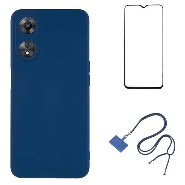WANLONFENG RB1 Series For Oppo A58 5G TPU Phone Case Screen Film+Lanyard 3-in-1 - Sapphire