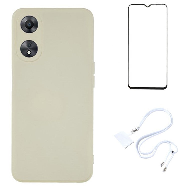WANLONFENG RB1 Series For Oppo A58 5G TPU Phone Case Screen Film+Lanyard 3-in-1 - White