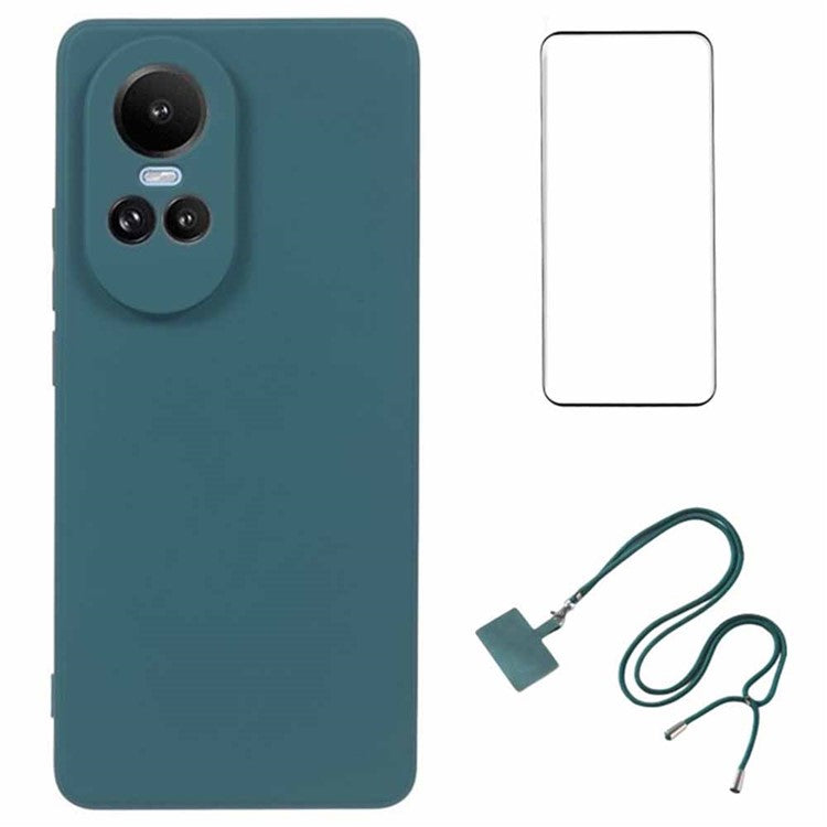 WANLONFENG RB1 Series For Oppo Reno10 Pro 5G (Global) Slim Case Soft TPU Phone Shell with Screen Protector - Army Green