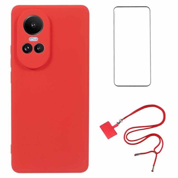 WANLONFENG RB1 Series For Oppo Reno10 Pro 5G (Global) Slim Case Soft TPU Phone Shell with Screen Protector - Red