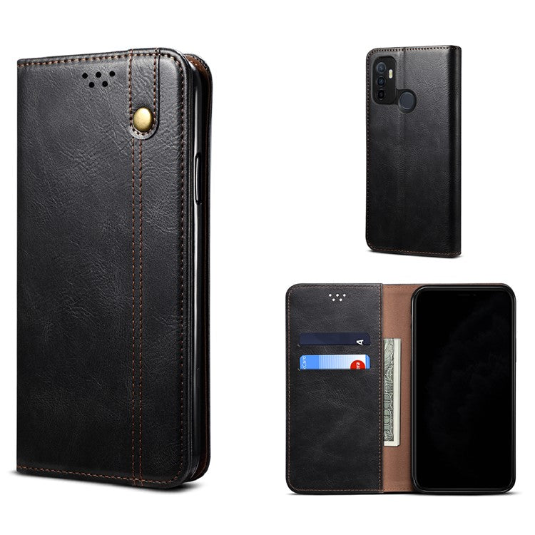 Waxy Crazy Horse Texture Leisure Style TPU + PU Leather Case Cover for Oppo A53(2020) - Black