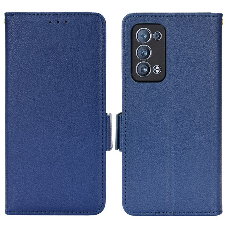 Well-protected Double Magnetic Clasp Litchi Texture PU Leather Stand Wallet Case Shell for Oppo Reno6 Pro+ 5G/Reno6 Pro 5G (Snapdragon) - Dark Blue