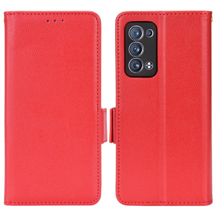 Well-protected Double Magnetic Clasp Litchi Texture PU Leather Stand Wallet Case Shell for Oppo Reno6 Pro+ 5G/Reno6 Pro 5G (Snapdragon) - Red