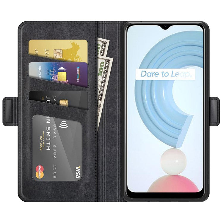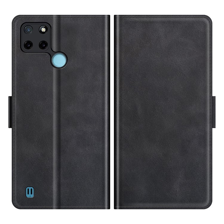 Well-protected Folio Flip Magnetic Clasp Closure Leather Case with Stand for Realme C21Y - Black