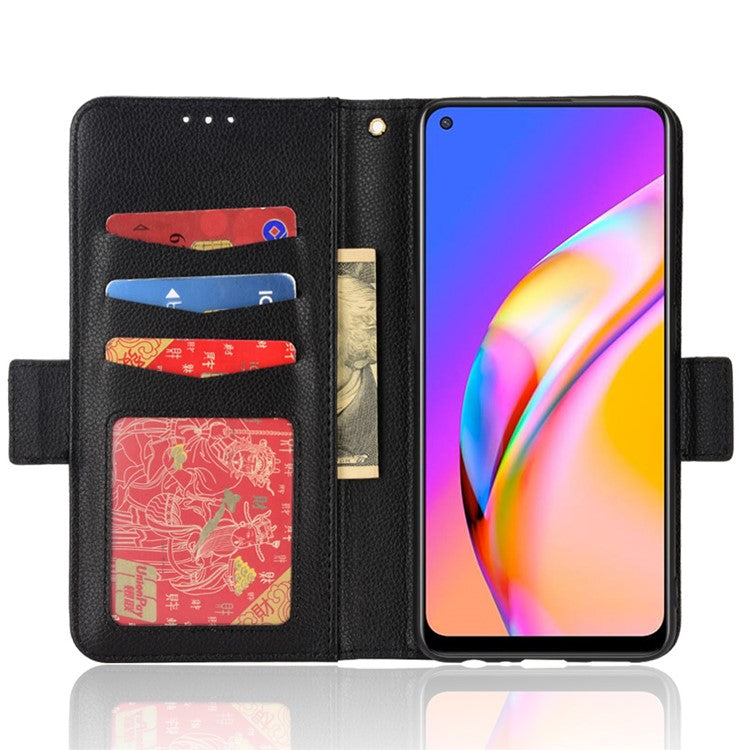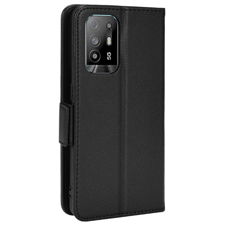 Well-protected Litchi Texture PU Leather Protective Cover Stand Wallet Phone Case for Oppo F19 Pro+ 5G/A94 5G/A95 5G/Reno5 Z - Black