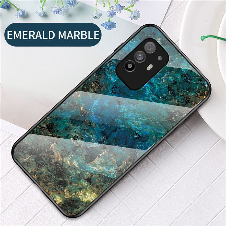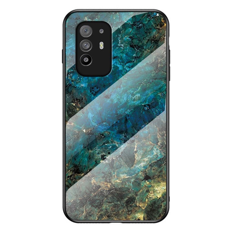 Well-Protected Marbling Pattern Design Anti-Scratch Tempered Glass Cell Phone Cover for Oppo A94 5G/F19 Pro+ 5G/Reno5 Z - Emerald Marble