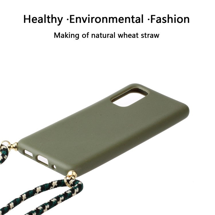 Wheat Straw TPU Phone Case with Hand Strap for Samsung Galaxy S20 4G/S20 5G - Green