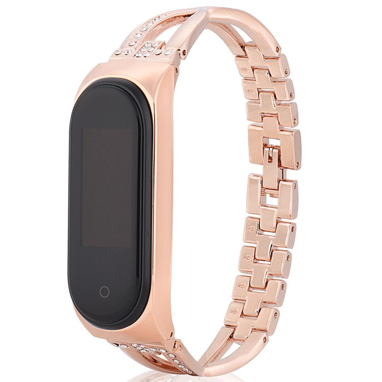 X Design Stainless Steel Watch Strap for Xiaomi Mi Band 5/6 Watchband with Rhinestone Decor - Rose Gold