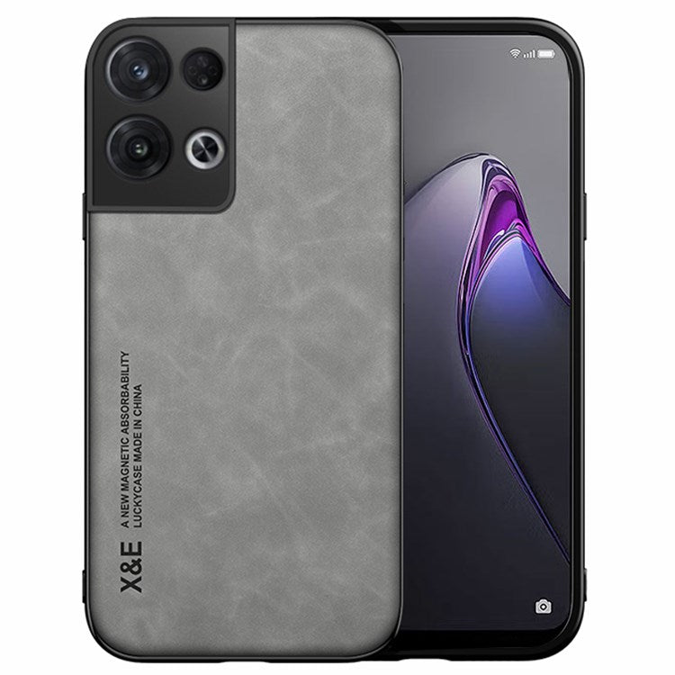 X&E Skin-touch Phone Case for Oppo Reno8 5G (Global Version) / Reno8 5G, Precise Cutout PU Leather Coated TPU Cover with Car Mount Metal Sheet - Light Grey