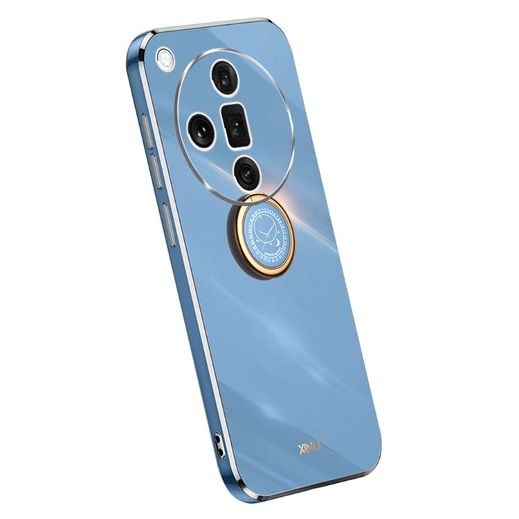 XINLI For Oppo Find X7 5G Phone Case Electroplating TPU Cover with Ring Kickstand - Blue