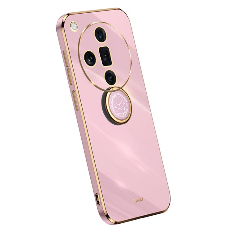 XINLI For Oppo Find X7 5G Phone Case Electroplating TPU Cover with Ring Kickstand - Purple