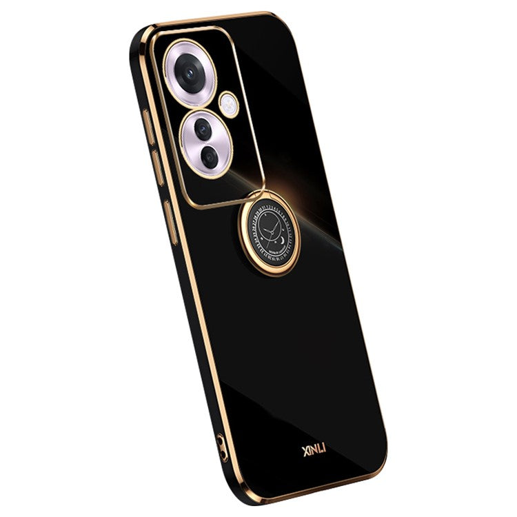 XINLI For Oppo Reno11 F 5G Case Electroplating TPU Phone Cover with Kickstand - Black