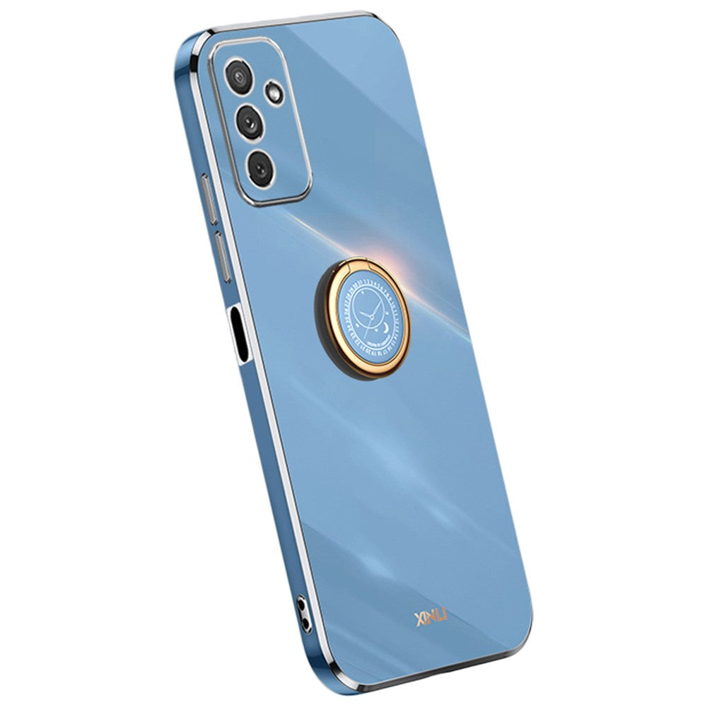 XINLI For Samsung Galaxy M23 5G / F23 5G Precise Lens Cutout Shockproof Phone Case with Ring Kickstand Electroplating Golden Edge Soft TPU Cover - Blue