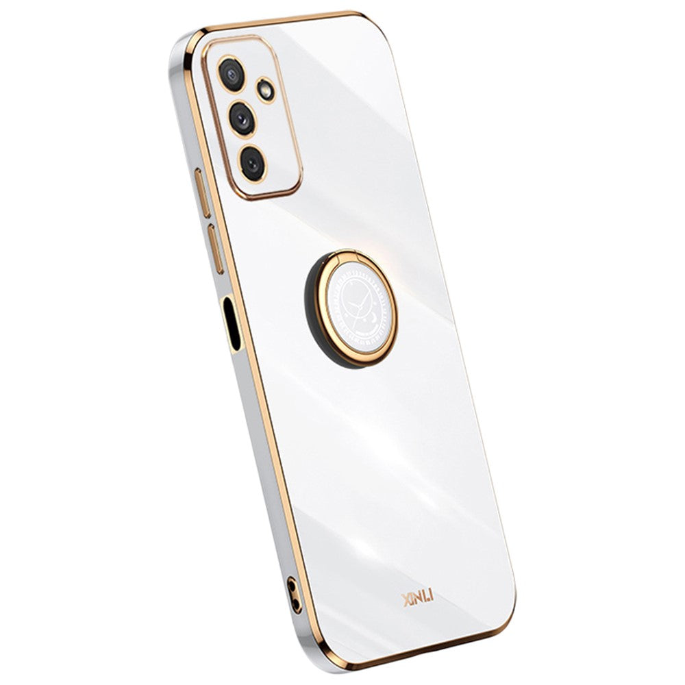 XINLI For Samsung Galaxy M23 5G / F23 5G Precise Lens Cutout Shockproof Phone Case with Ring Kickstand Electroplating Golden Edge Soft TPU Cover - White