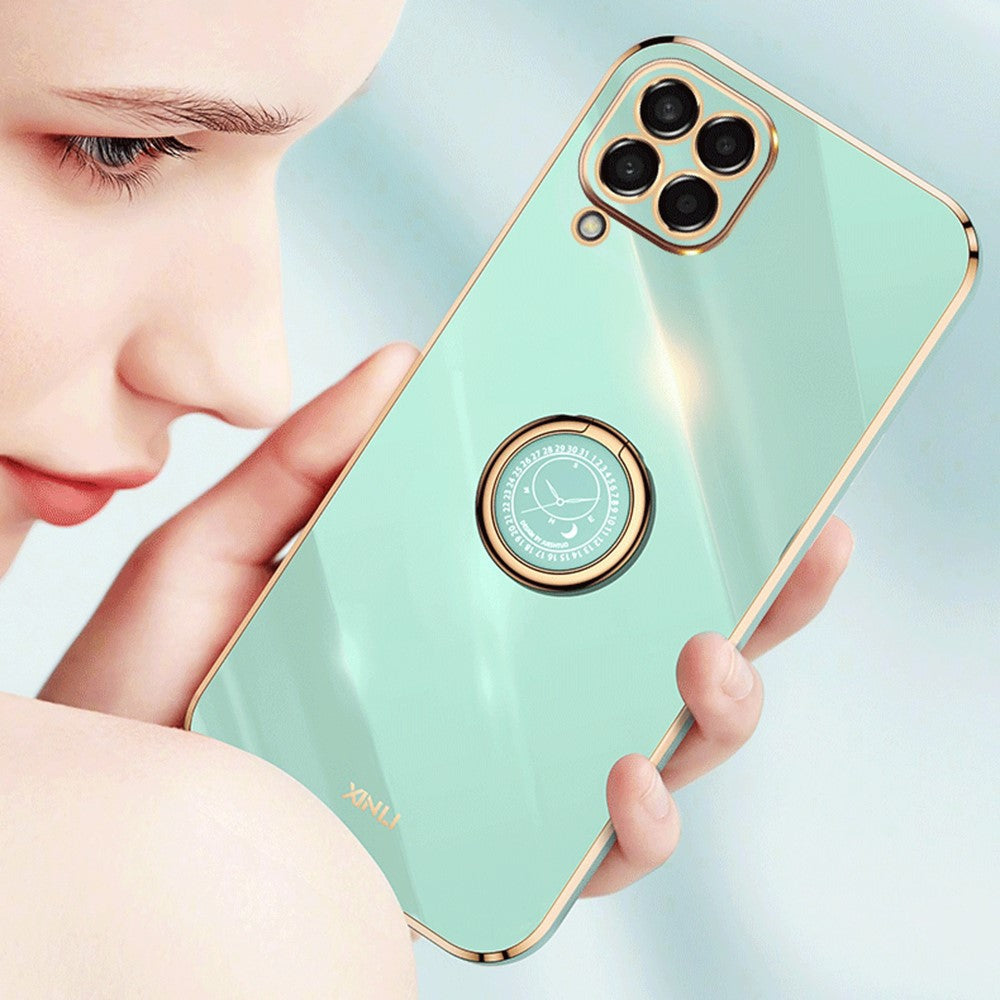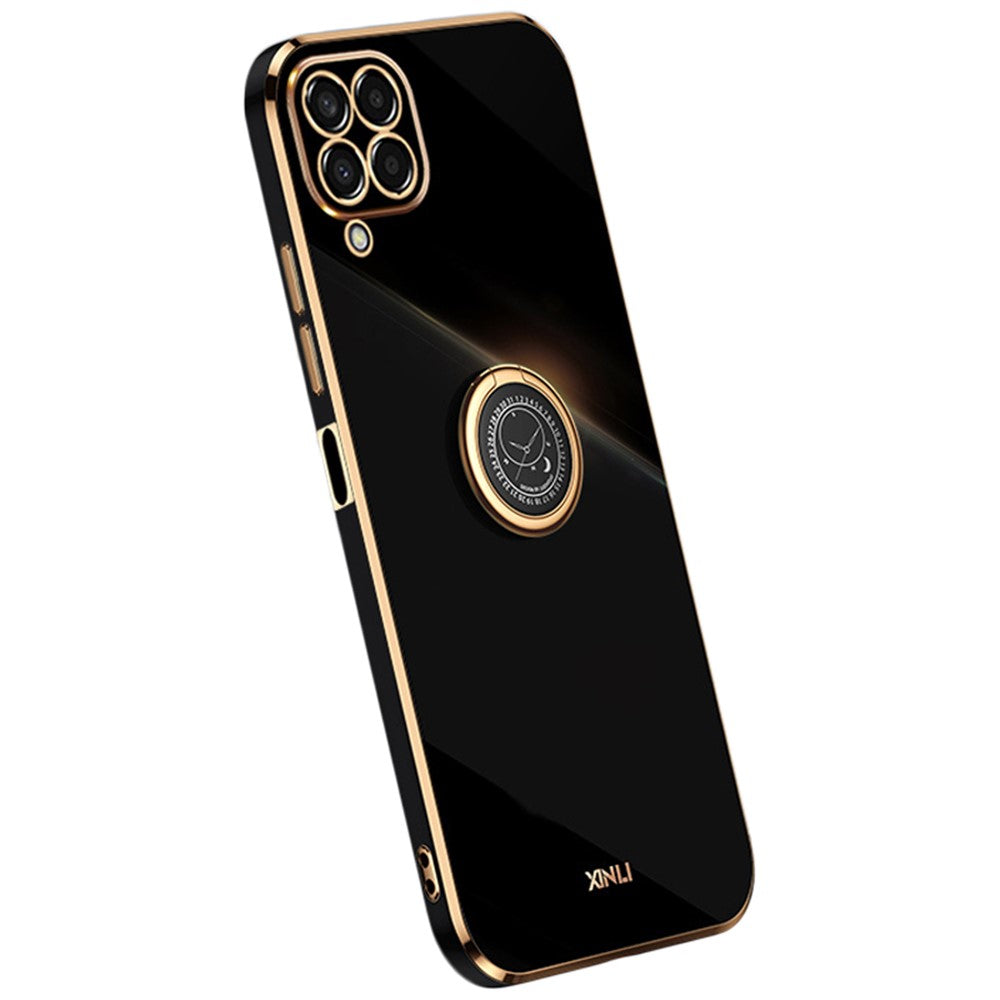 XINLI For Samsung Galaxy M53 5G Electroplating Golden Edge Soft TPU Cover Precise Lens Cutout Phone Case with Ring Kickstand - Black