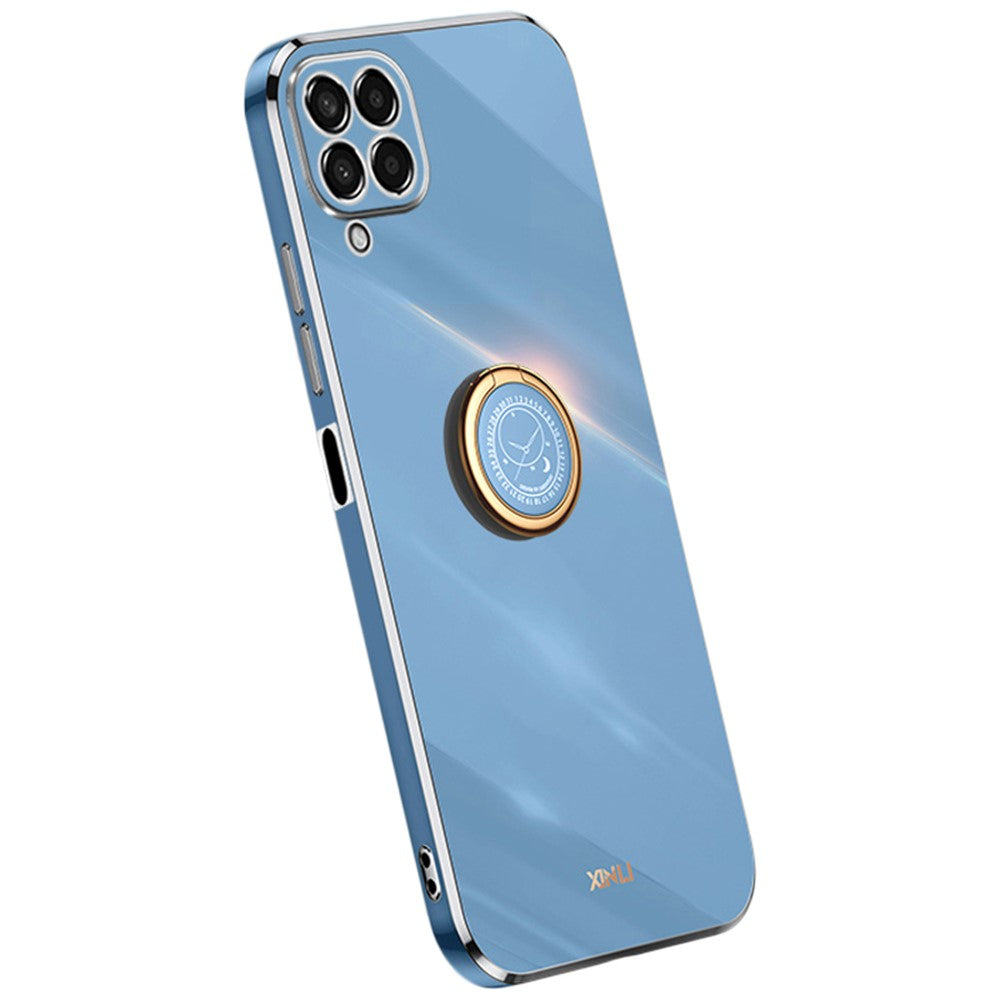 XINLI For Samsung Galaxy M53 5G Electroplating Golden Edge Soft TPU Cover Precise Lens Cutout Phone Case with Ring Kickstand - Blue