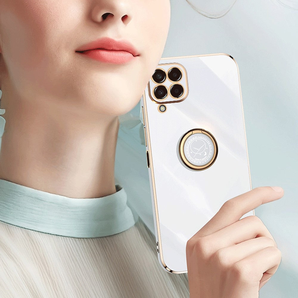 XINLI For Samsung Galaxy M53 5G Electroplating Golden Edge Soft TPU Cover Precise Lens Cutout Phone Case with Ring Kickstand - Pink