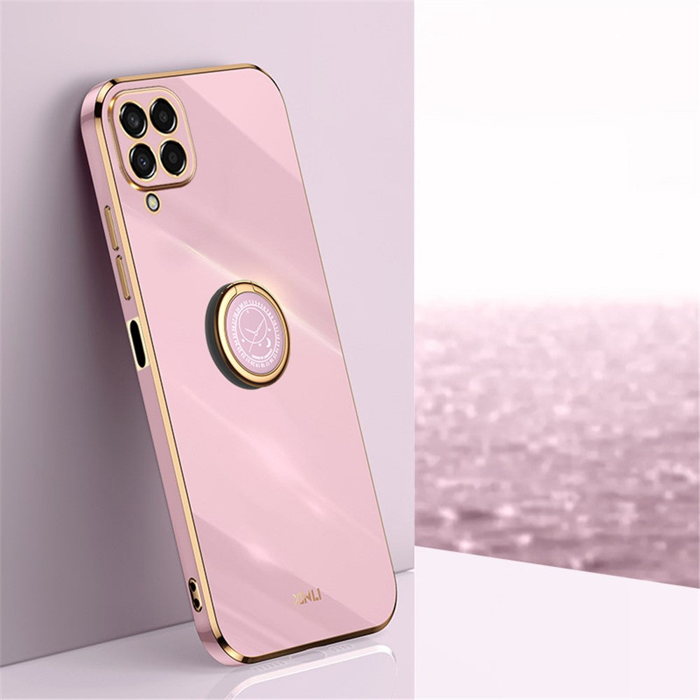 XINLI For Samsung Galaxy M53 5G Electroplating Golden Edge Soft TPU Cover Precise Lens Cutout Phone Case with Ring Kickstand - Purple