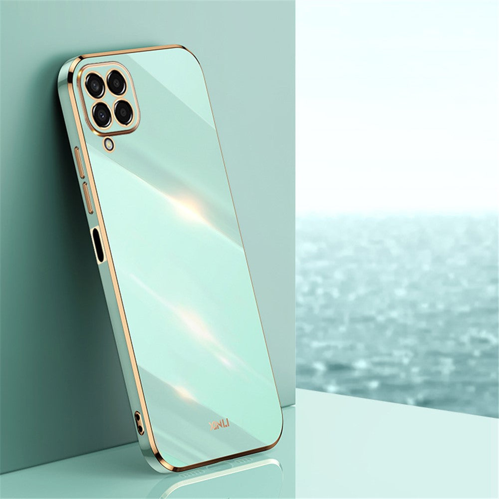 XINLI Phone Case for Samsung Galaxy M33 5G (Global Version), Electroplating Golden Edge Back Protector TPU Cover - Cyan