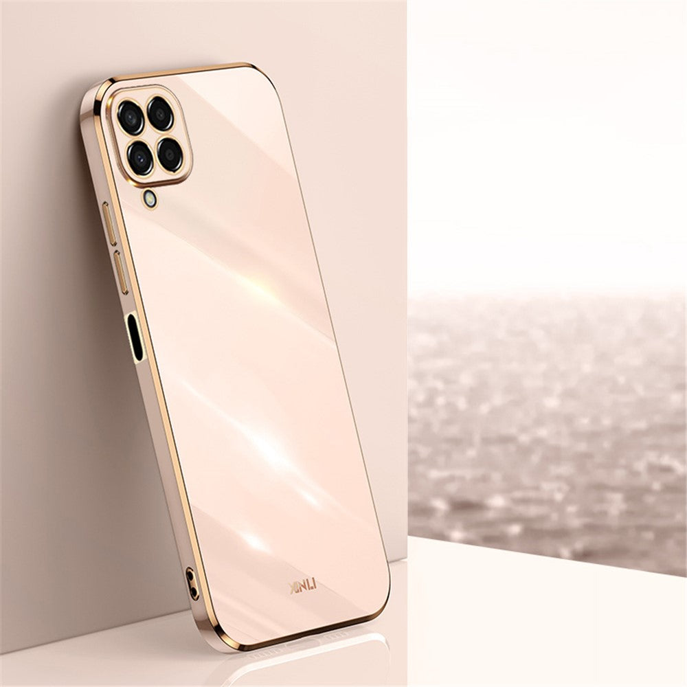 XINLI Phone Case for Samsung Galaxy M33 5G (Global Version), Electroplating Golden Edge Back Protector TPU Cover - Pink
