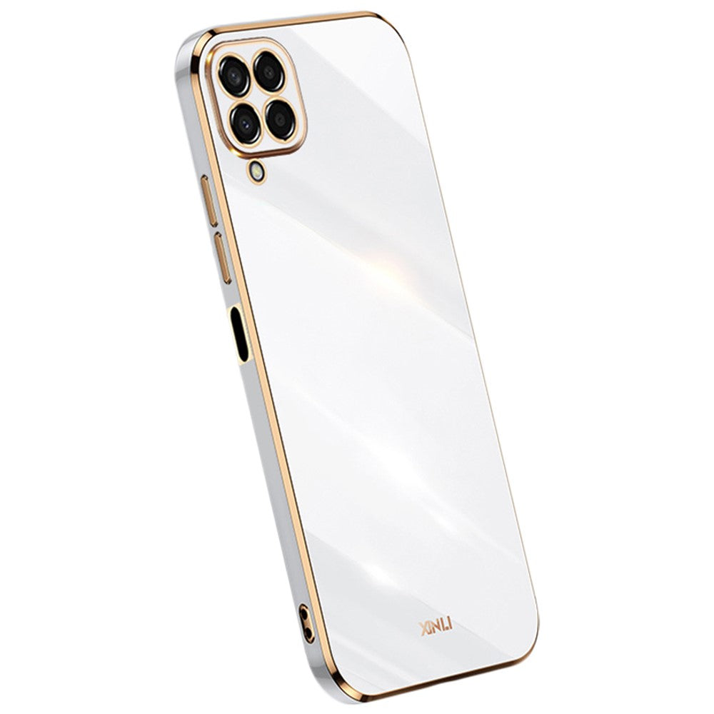 XINLI Phone Case for Samsung Galaxy M33 5G (Global Version), Electroplating Golden Edge Back Protector TPU Cover - White