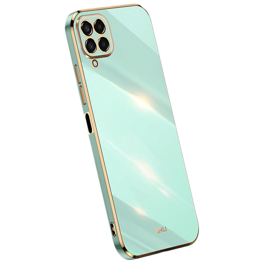 XINLI Phone Case for Samsung Galaxy M53 5G, Electroplating Golden Edge Shockproof TPU Protective Cover - Cyan