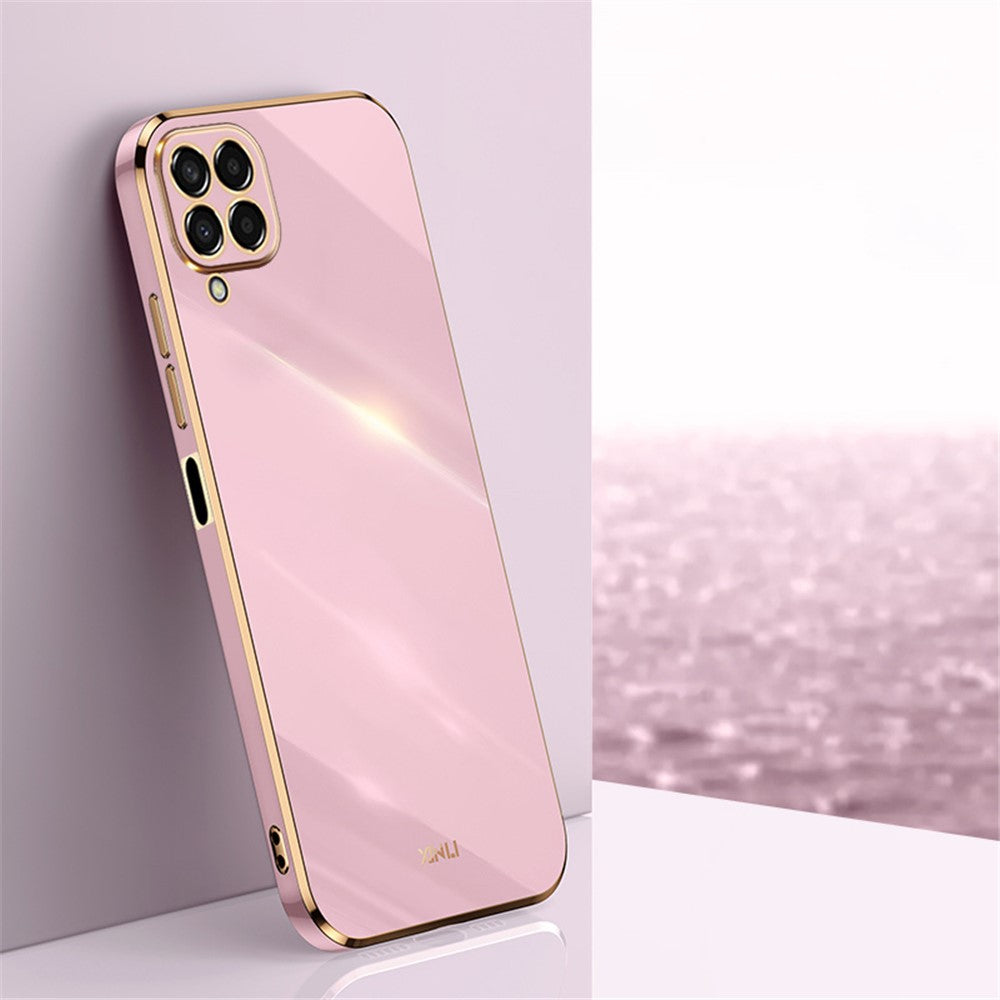 XINLI Phone Case for Samsung Galaxy M53 5G, Electroplating Golden Edge Shockproof TPU Protective Cover - Purple