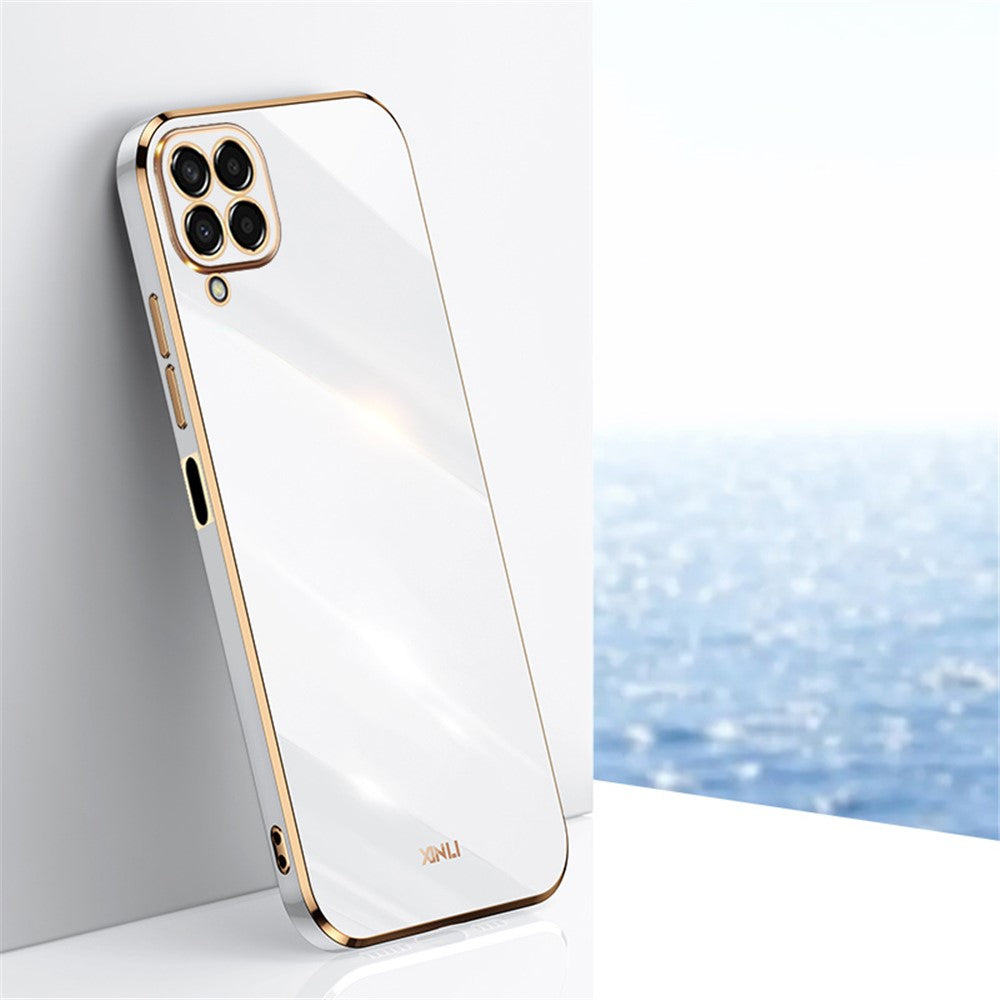 XINLI Phone Case for Samsung Galaxy M53 5G, Electroplating Golden Edge Shockproof TPU Protective Cover - White