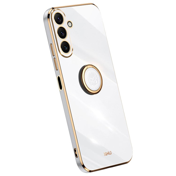 XINLI Ring Kickstand Phone Case for Samsung Galaxy M54 5G / F54 5G Electroplated Precise Lens Cut-out TPU Cover - White