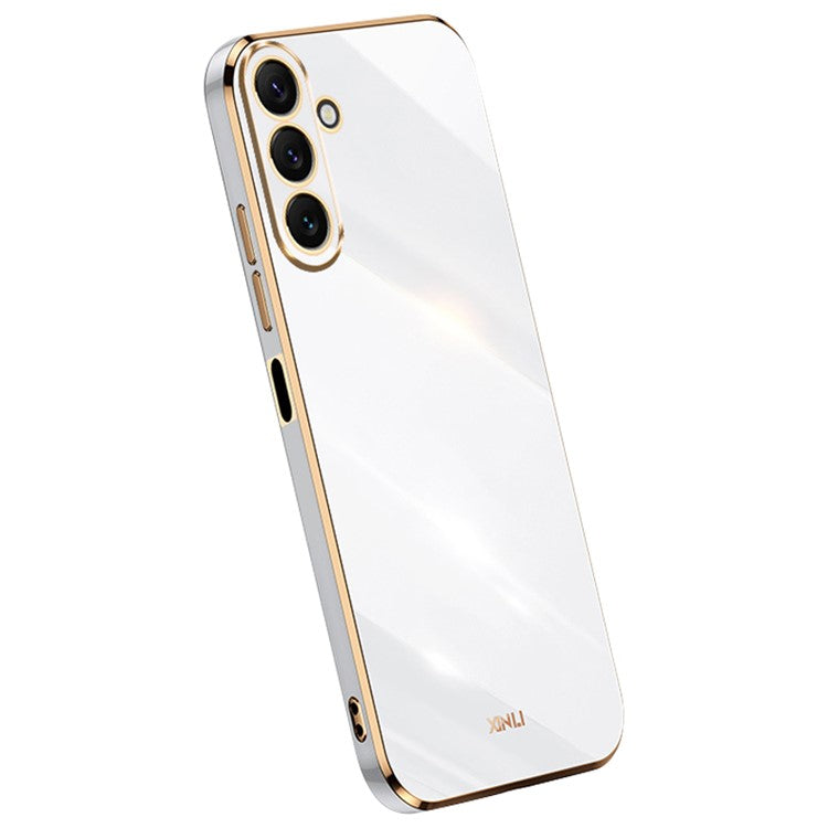 XINLI TPU Phone Case for Samsung Galaxy M54 5G / F54 5G Full Camera Protection Electroplated Gold Edge Cover - White