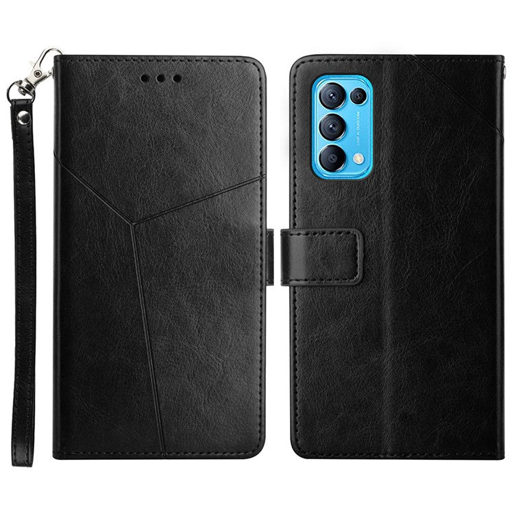 Y-Shaped Line Imprinting Full Body Protection Magnetic Clasp Wallet Stand PU Leather Phone Cover for Oppo Reno5 4G/5G/Reno5 K/Find X3 Lite - Black