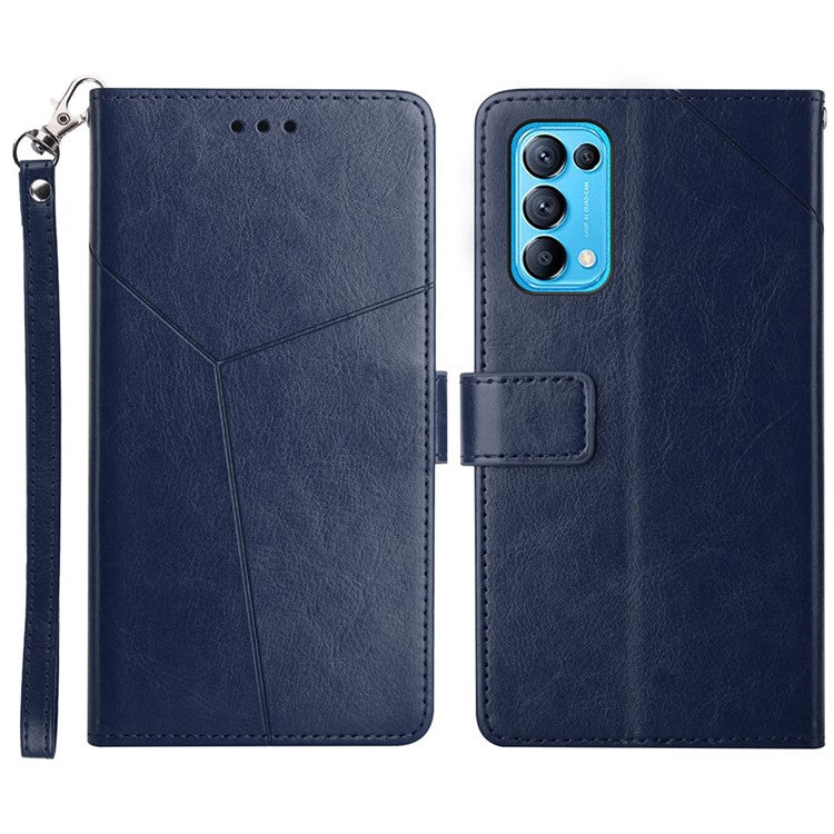 Y-Shaped Line Imprinting Full Body Protection Magnetic Clasp Wallet Stand PU Leather Phone Cover for Oppo Reno5 4G/5G/Reno5 K/Find X3 Lite - Blue