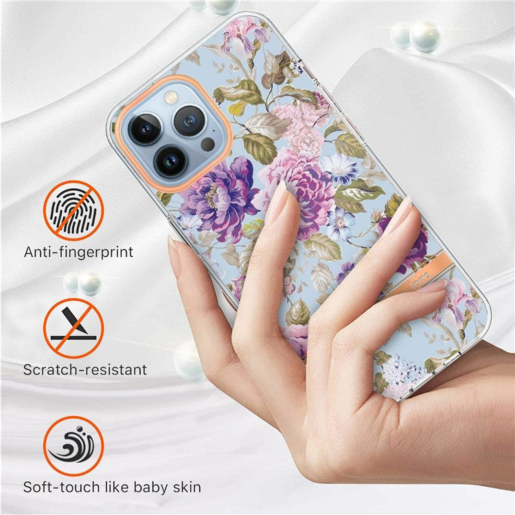 YB IMD-8 Series for iPhone 16 Pro TPU Case Flower Pattern IMD IML Phone Cover - HC006 Purple Peony