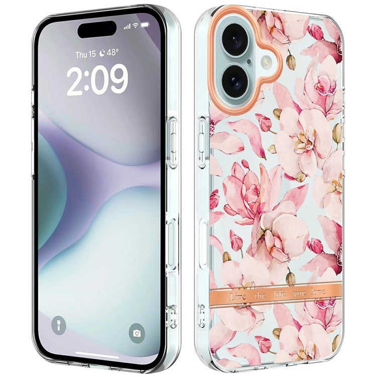 YB IMD-8 Series for iPhone 16 TPU Case Flower Pattern IMD IML Phone Cover - HC005 Pink Gardenia