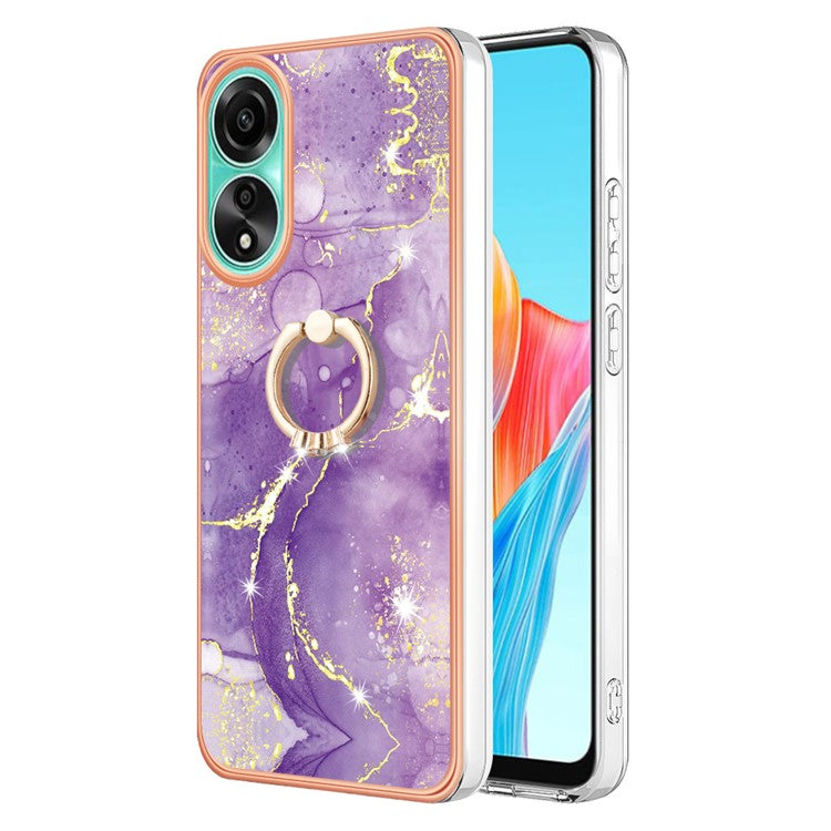 YB IMD Series-10 For Oppo A78 4G Cell Phone Cases IMD Marble Kickstand TPU Shockproof Cover - Purple 002
