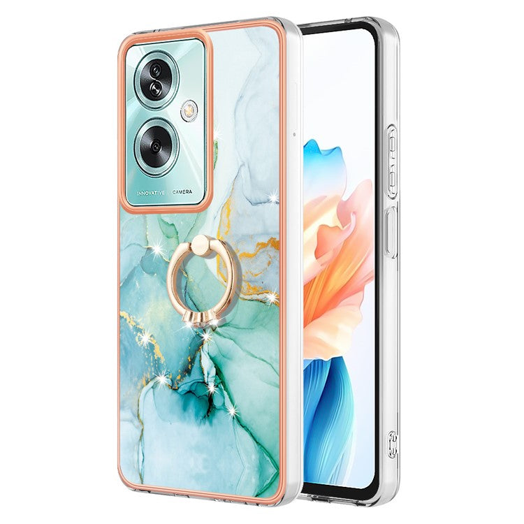 YB IMD Series-10 For Oppo A79 5G / A2 5G Cell Phone Case Marble Pattern TPU Cover with Ring Kickstand - Green 003