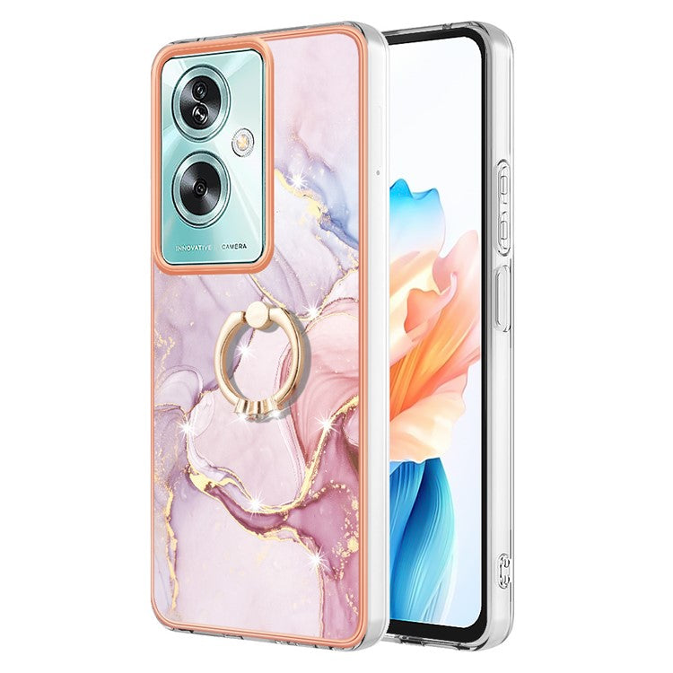 YB IMD Series-10 For Oppo A79 5G / A2 5G Cell Phone Case Marble Pattern TPU Cover with Ring Kickstand - Rose Gold 005