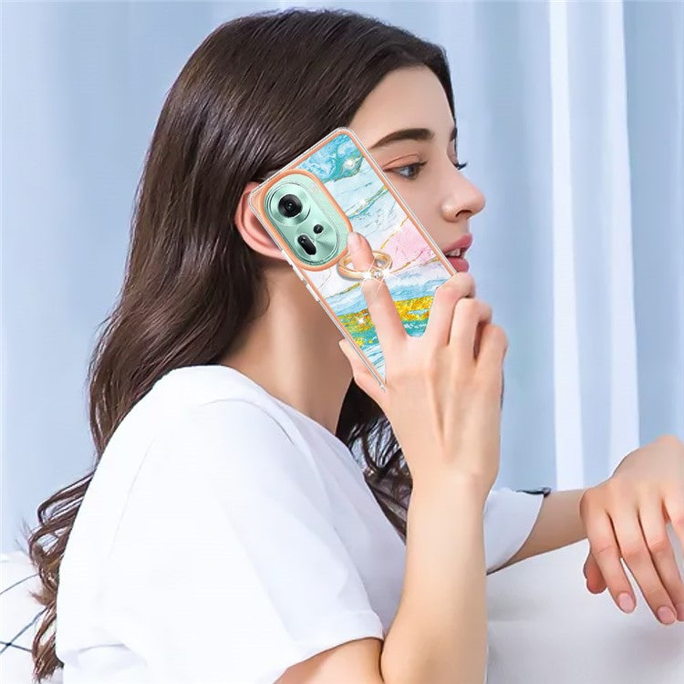 YB IMD Series-10 For Oppo Reno11 5G (Global) Case TPU Ring Kickstand Cover Electroplating Design - Green 004