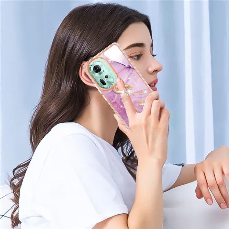YB IMD Series-10 For Oppo Reno11 5G (Global) Case TPU Ring Kickstand Cover Electroplating Design - Purple 001