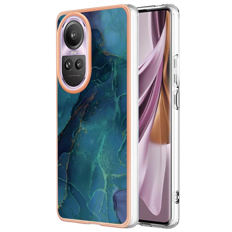 YB IMD Series-16 Style-E Marble Pattern Phone Case for Oppo Reno10 Pro 5G (Global) Electroplating IMD 2.0mm TPU Protective Cover - Green