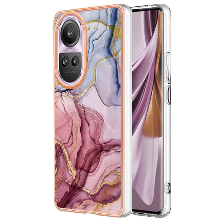 YB IMD Series-16 Style-E Marble Pattern Phone Case for Oppo Reno10 Pro 5G (Global) Electroplating IMD 2.0mm TPU Protective Cover - Rose Gold