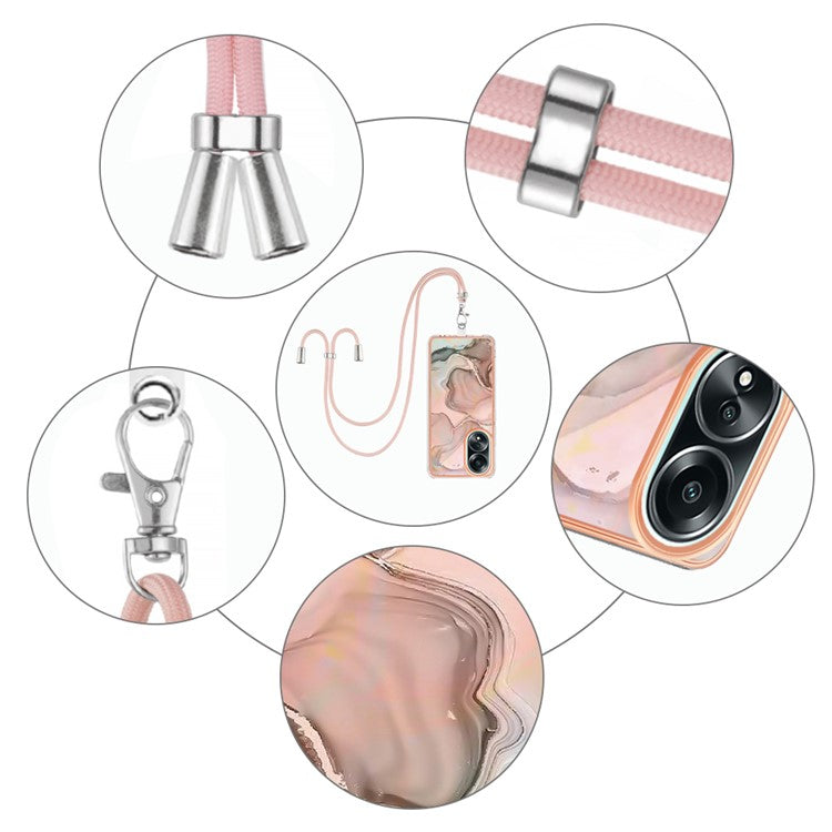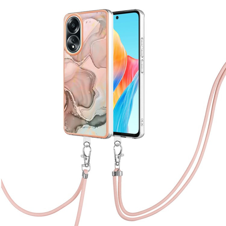 YB IMD Series-18 Style E for Oppo A58 4G Case Marble Pattern Electroplating Cover with Lanyard - Pink